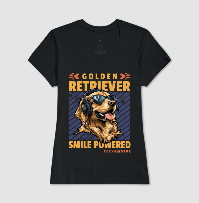 Energia boa e sorriso garantido! A camiseta traz um Golden Retriever estilizado com óculos escuros e fones de ouvido, celebrando a vibe positiva que só um dogão desses transmite. Feita para quem é movido a alegria e estilo, com estampa cheia de atitude e malha confortável. Ideal para quem carrega o espírito livre – seja sobre rodas ou com patas no chão.
